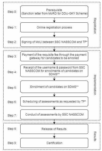 Process flow for the conduct of outcomes based Training Assessments and Certifications for IT-ITeS Qualification Packs by IT-ITeS Sector Skills Council NASSCOM under DDU-GKY Scheme