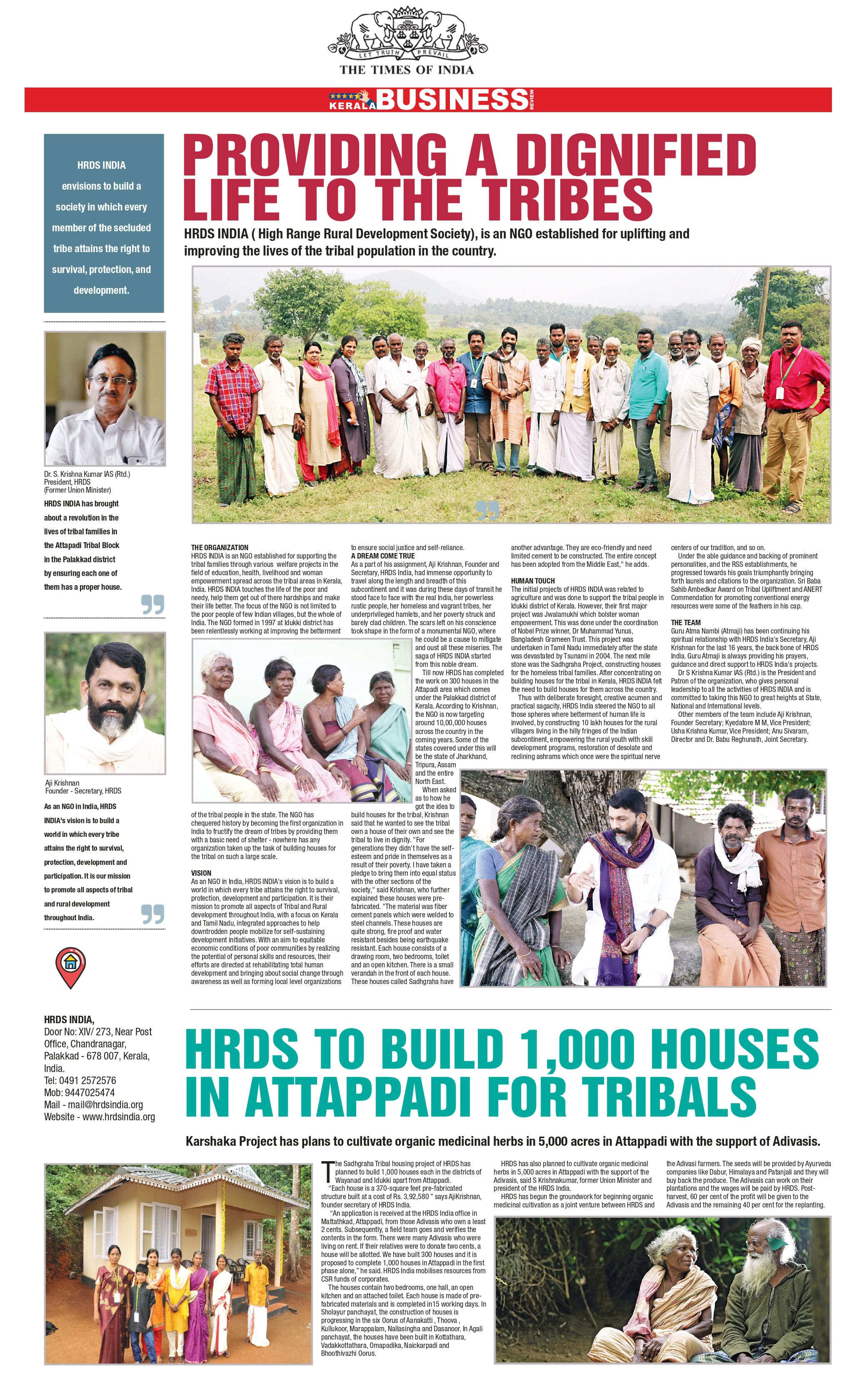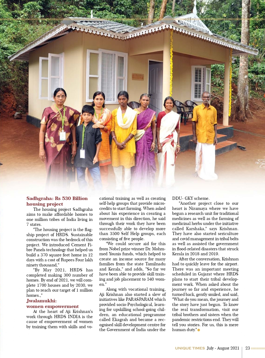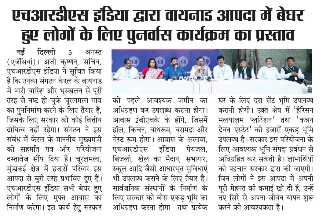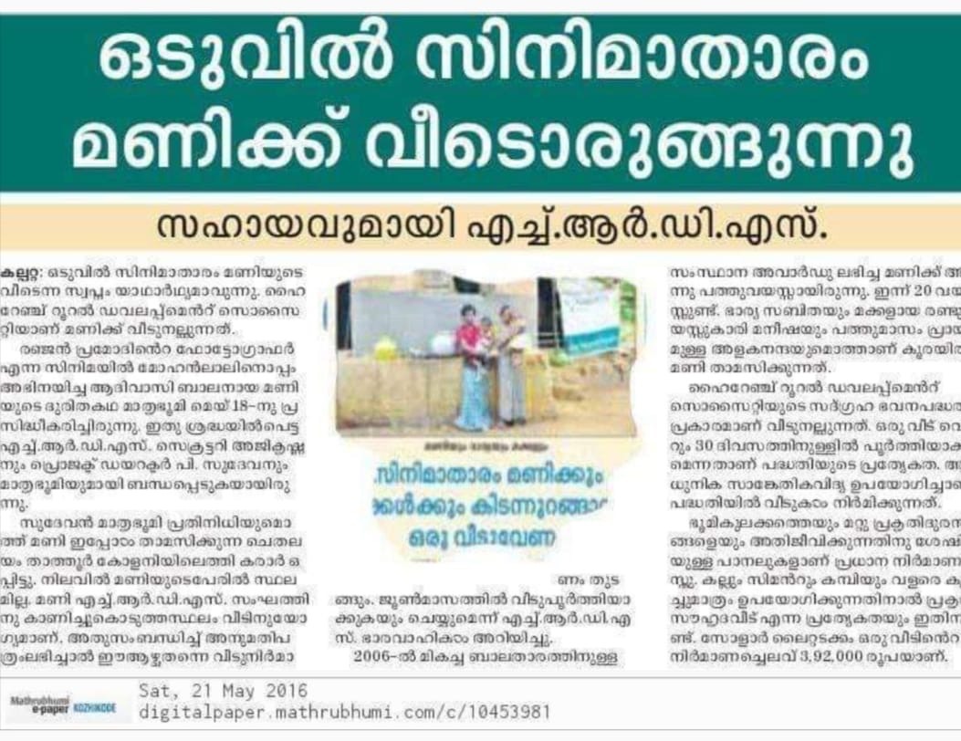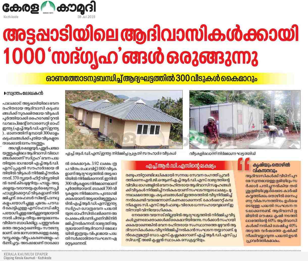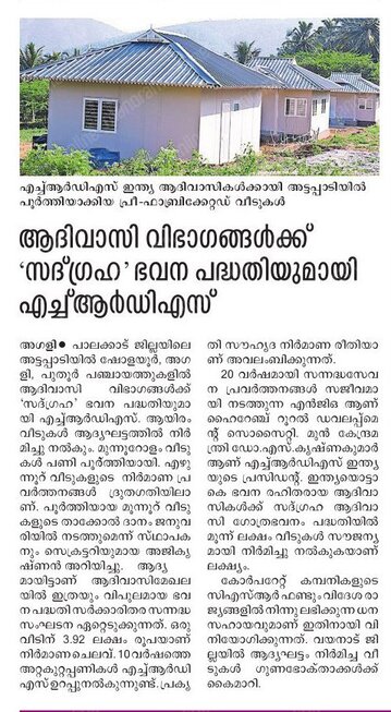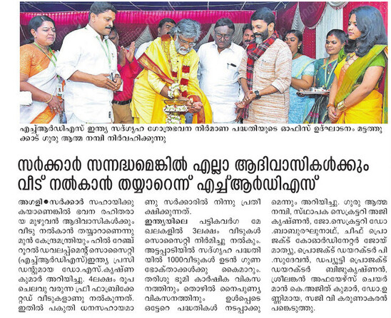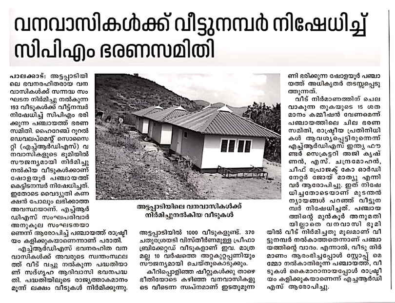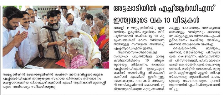 to complete 1,000 houses in Attappadi in the first phase alone,” he said. HRDS India mobilises resources from CSR funds of corporates.