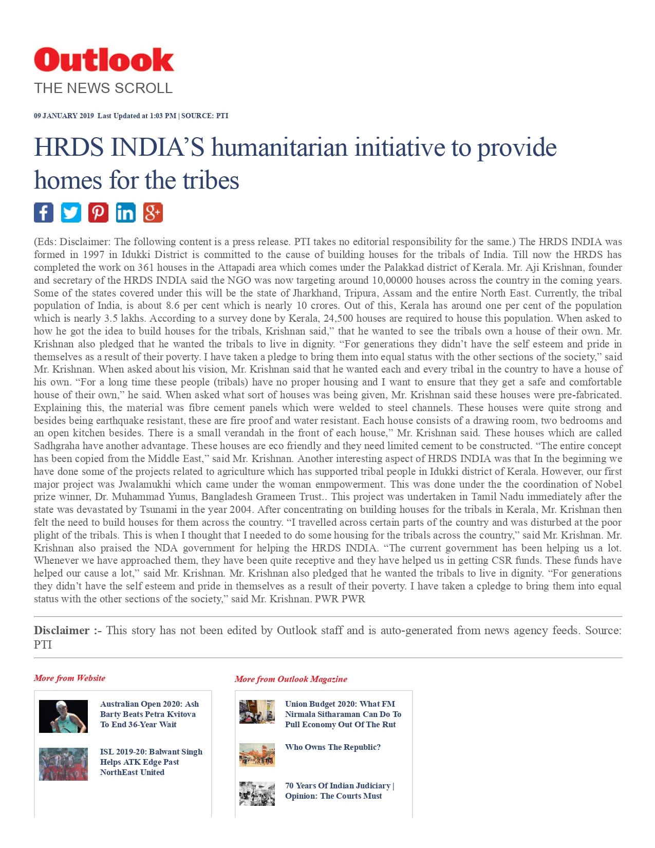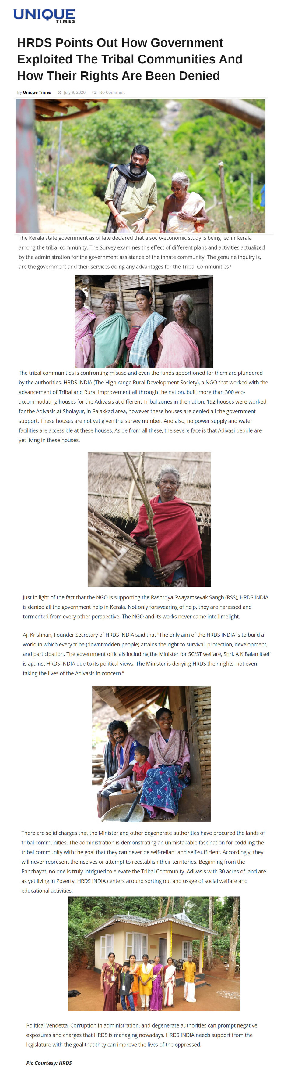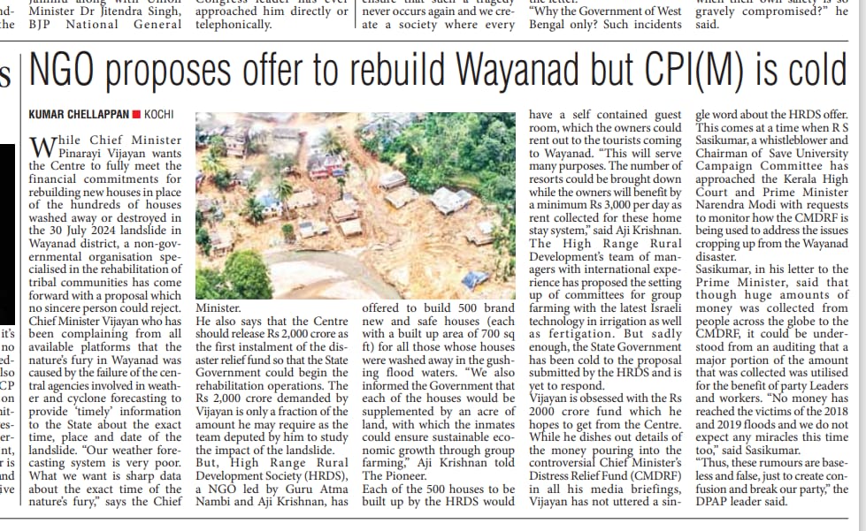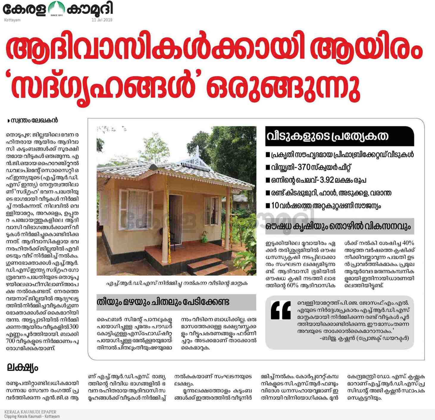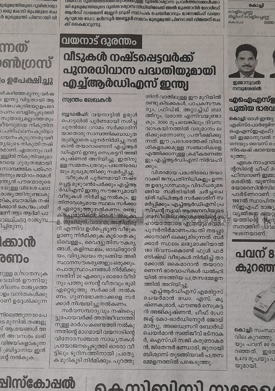 to complete 1,000 houses in Attappadi in the first phase alone,” he said. HRDS India mobilises resources from CSR funds of corporates.