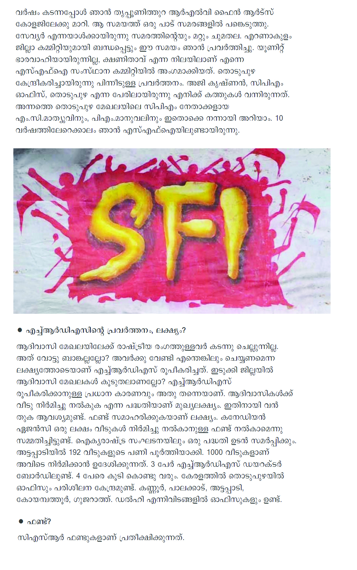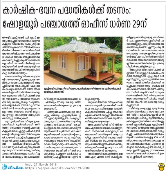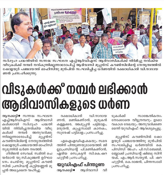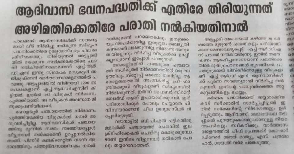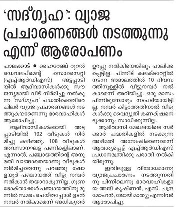 in the form. There were many Adivasis who were living on rent. If their relatives were to donate two cents, a house will be allotted. We have built 300 houses and it is pro-posed