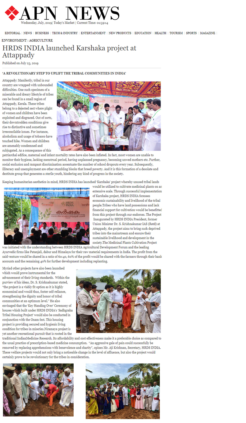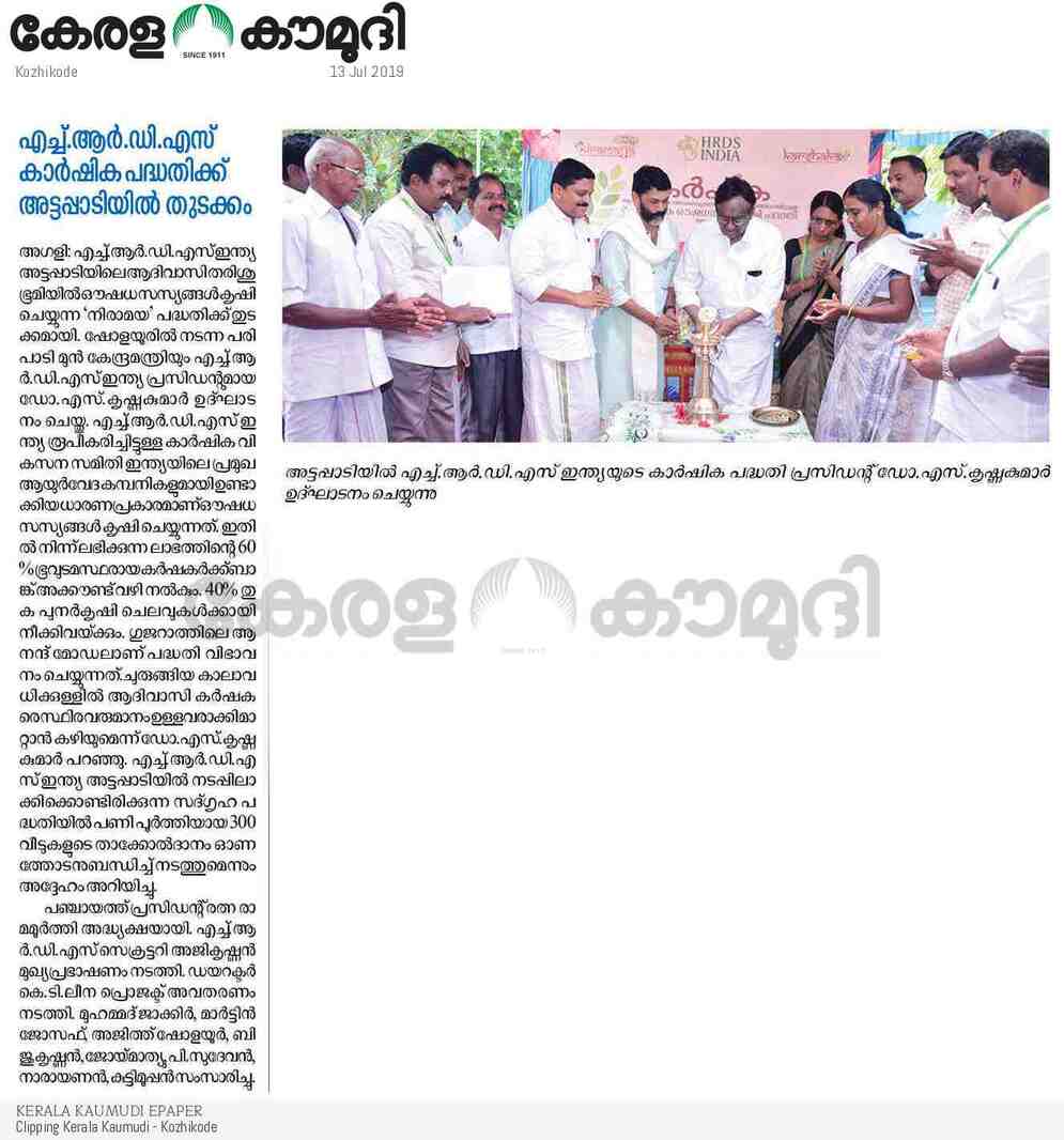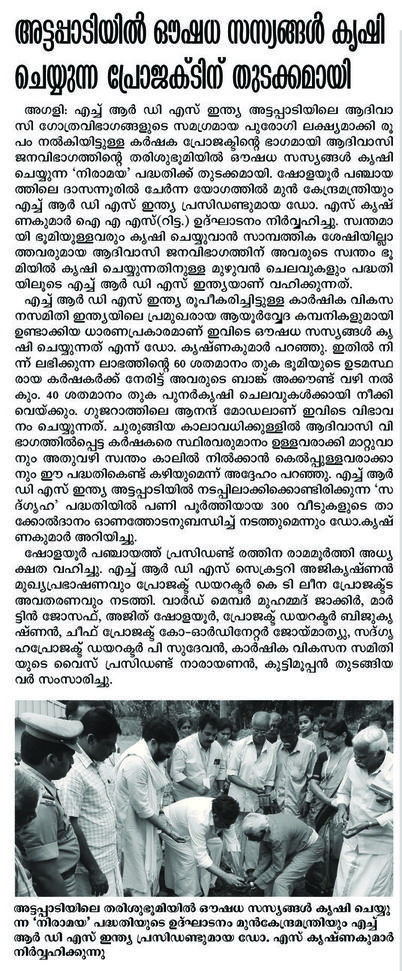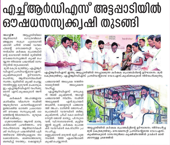 Sadgraha Tribal housing project has plans to cultivate organic medicainal herbs in 5,000 acres in Attappadi with the support of Adivasis.